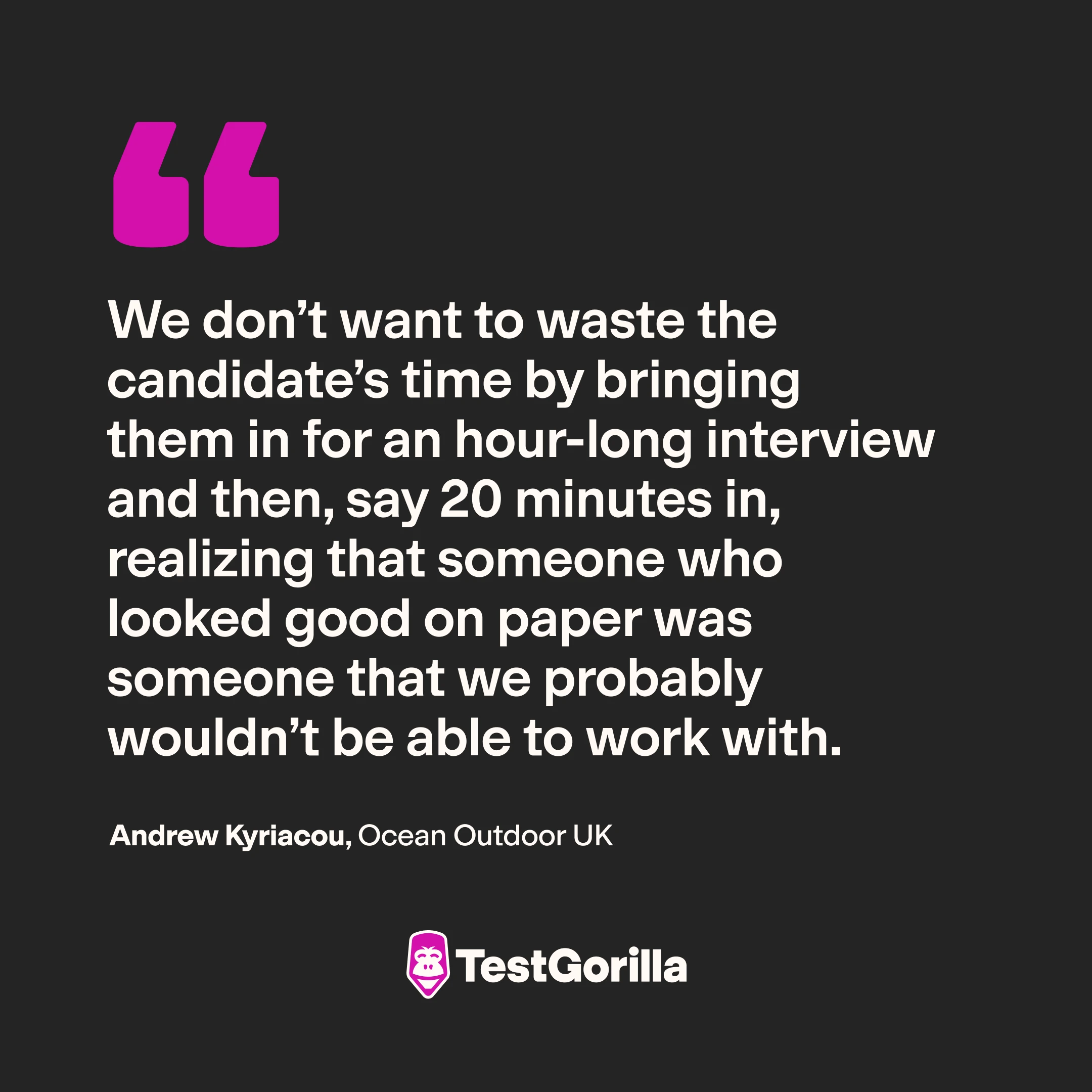 “We don’t want to waste the candidate’s time by bringing them in for an hour-long interview and then, say 20 minutes in, realizing that someone who looked good on paper was someone that we probably wouldn’t be able to work with.”