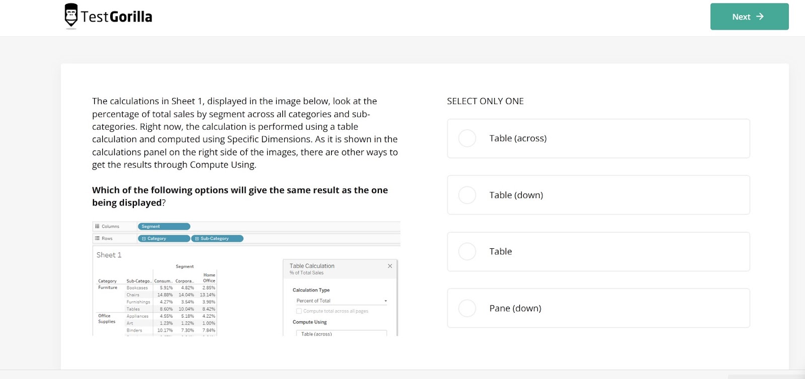 The smart solution is to use TestGorilla’s Tableau test at the start of the hiring process to evaluate job skills.